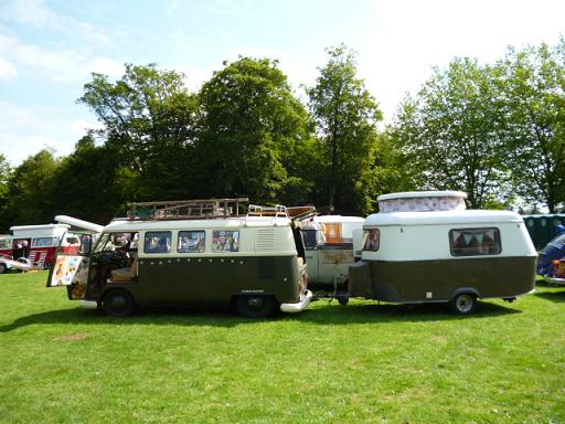 | This gorgeous yellow and sliver spilt screen was parked up just along from Matthew and I. The two tone colour choice suited this bus perfectly, as did the matching trailer. |