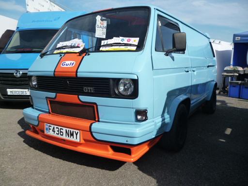 | This 1988 T25 panel van looked fantastic in it's 'Gulf' racing colours paint scheme. I did like the front spoiler that helped the overall look of this super cool looking van. |